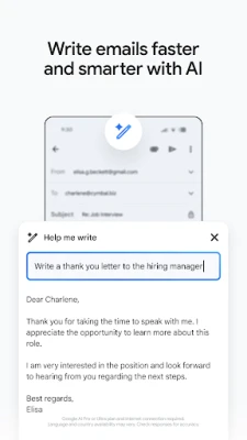 Kama sehemu muhimu ya Google Workspace, Gmail inabadilisha jinsi unavyofanya kazi na timu yako. Ungana na wenzako kupitia Google Chat kwa mazungumzo ya papo hapo, au anzisha simu za video zenye ubora wa hali ya juu ukitumia Google Meet – yote bila kuondoka kwenye Gmail. Unda Vyumba maalum ili kupanga miradi, mada, na watu, ukifanya ushirikiano kuwa rahisi na wenye tija. Ukiwa na vipengele mahiri kama Utungaji Mahiri na mapendekezo ya sarufi, Gmail inakusaidia kuandika barua pepe bora na kwa haraka, kukuwezesha kuzingatia yale muhimu zaidi. Hii ndio nguvu ya mawasiliano iliyounganishwa, salama, na yenye ufanisi, inayotegemea akili bandia ya Google.