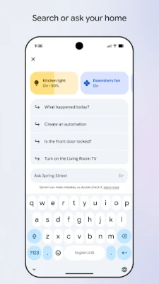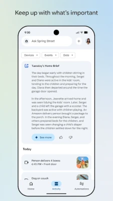 Usikose kamwe tukio muhimu ukitumia ufuatiliaji wa kamera wa Google Home. Angalia matukio ya moja kwa moja na chunguza historia ya video kwa urahisi, ukipata picha kamili ya kilichotokea wakati wowote. Zaidi ya hayo, dhibiti makazi yako kwa njia ya kisasa na ya kipekee. Sema tu unachotaka vifaa vyako vifanye ukitumia Gemini kwenye Home, ukifurahia udhibiti wa sauti usio na mshono unaorahisisha maisha yako ya kila siku. Kumbuka, upatikanaji wa baadhi ya vipengele na bidhaa unaweza kutofautiana kulingana na eneo, na unahitaji vifaa vinavyoendana ili kufurahia utendaji kamili.