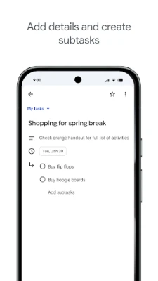 Usikubali undani wowote ukupite. Google Majukumu inakupa uhuru wa kugawanya kazi kubwa kuwa majukumu madogomadogo, na kuongeza maelezo ya kina ili kuhakikisha kila kipengele kinashughulikiwa kikamilifu. Hata kama vipaumbele vinabadilika, unaweza kusasisha maelezo na miongozo ya majukumu yoyote kwa urahisi, kuhakikisha kazi yako inaendelea kwa ufasaha. Zaidi ya hayo, unganisha kazi na mawasiliano yako kwa urahisi kwa kubadilisha barua pepe muhimu za Gmail kuwa majukumu papo hapo, na uyaone yakionekana kwenye kidirisha cha pembeni. Hii inahakikisha hutawahi kukosa hatua muhimu iliyotokana na mawasiliano ya barua pepe.