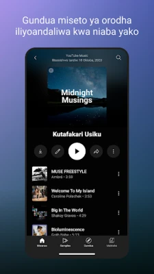 Kamilisha uzoefu wako wa kusikiliza kwa vipengele vya kipekee. Imba pamoja na maneno kamili ya nyimbo unazopenda, na ubadilishe kwa urahisi kati ya kusikiliza sauti na kutazama video. Burudisha masikio yako kwenye kifaa chochote – simu yako mahiri, kompyuta ya mezani, spika mahiri, TV mahiri, gari lako, au saa yako mahiri. Hata ongeza kigae maalum kwenye saa yako ya Wear OS kwa ufikiaji wa haraka wa nyimbo zako pendwa. Huduma hii pia inaoana kikamilifu na programu maarufu kama Mratibu wa Google, Ramani za Google, Waze, na nyinginezo. Kwa wale wanaotaka uzoefu wa hali ya juu, jisajili kwenye Music Premium (inapatikana katika nchi teule) ili kufurahia muziki bila matangazo, kucheza chinichini, na kufikia nyimbo zilizopakuliwa, ikiwemo upakuaji wa moja kwa moja. Kwa watumiaji wa Music Premium, badilisha kwa urahisi kati ya toleo la sauti pekee na la video, kipengele kinachopatikana kipekee kupitia YouTube Music.